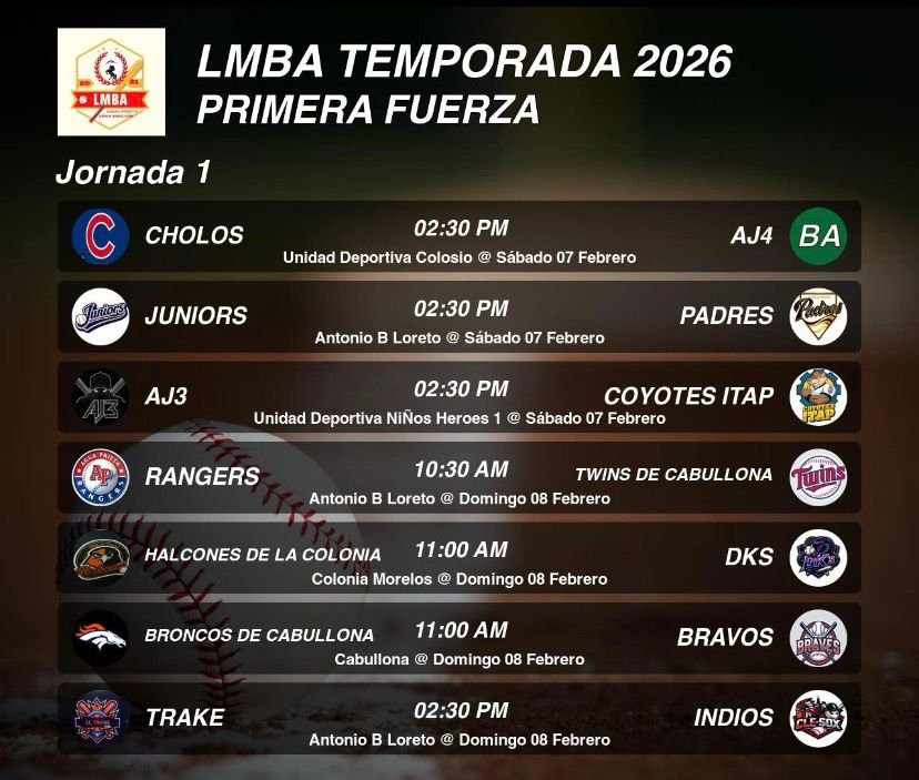La espera ha terminado para los amantes de las grandes emociones. Este fin de semana, la Liga Municipal de Beisbol de Agua Prieta (LMBA) inicia oficialmente su Temporada 2026 en la categoría de Primera Fuerza. Los diamantes de la ciudad se vestirán de gala para recibir a las novenas más poderosas de la región en una jornada inaugural que promete duelos de pitcheo y batazos de largo metraje.